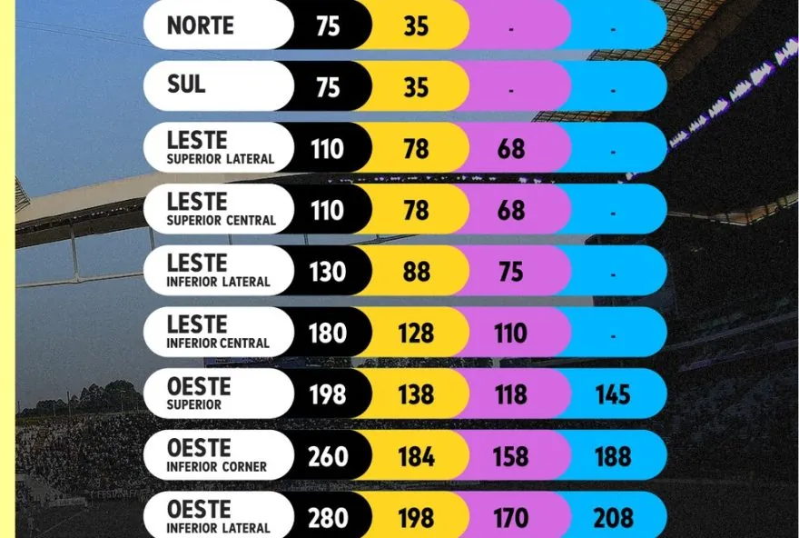 Os preços dos ingressos variam de R$ 75,00 a R$ 280,00, de acordo com o setor escolhido. Os sócios-torcedores contarão com descontos especiais, que podem chegar a até 53% dependendo do plano do membro associado.