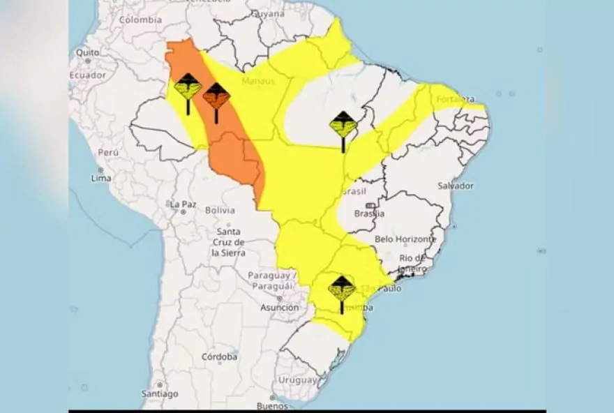 De acordo com o Instituto Nacional de Meteorologia (Inmet), as regiões Norte, Nordeste, Sudeste e Centro-Oeste, porém, também serão impactadas pelo mau tempo. Nestes lugares, chuvas intensas estão previstas. Segundo o órgão, um alerta na coloração amarela, que indica a menor escala de impacto, sendo ela de “perigo potencial”, encobre parte da Região Sul e o estado de São Paulo. A previsão aponta para chuva entre 20 e 30 mm/h, ventos intensos entre 40 e 60 km/h e queda de granizo.