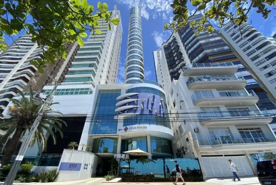 Localizado no Gran Felicitá Residence, o duplex está distribuído entre a área de lazer, no andar superior, e a área residencial, no inferior. Os cômodos incluem três suítes, sendo duas delas com vista para o mar, um espaço integrado de living social, sala de jantar e cozinha planejada, uma sala de TV com paredes de vidro, móveis sob medida com marcenaria de alto padrão, entre outros.