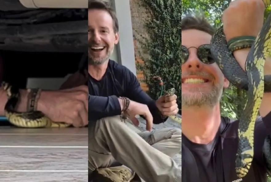 “É óbvio que, se for pegar o bicho, resgatar, tem que apertar, puxar um pouco, vai estressá-la. Com certeza, ela vai querer me morder e como me mordeu também no vídeo, né? Mas aqui ó, ela tá simplesmente calminha, fascinante, louca para voltar para a natureza”, disse no vídeo.