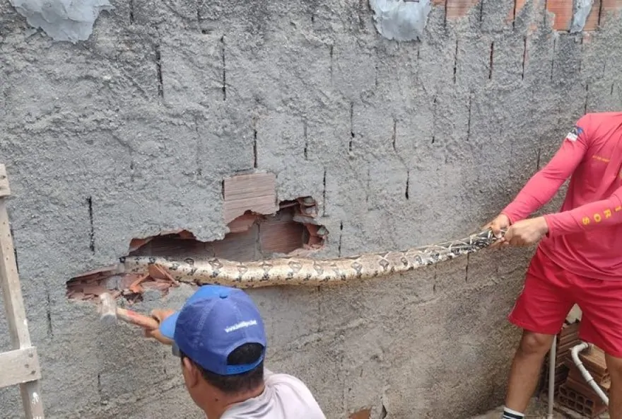 Uma cobra da espécie Jiboia, com quase dois metros de comprimento, foi encontrada presa dentro da parede de uma residência no Loteamento São José, em Caruaru, cidade localizada no Agreste de Pernambuco. O Corpo de Bombeiros foi acionado por volta das 16h15 da última terça-feira (21) para realizar o resgate do animal. Após o resgate bem-sucedido, a serpente foi levada para ser solta no Parque Natural Municipal Professor João Vasconcelos Sobrinho, que está localizado na zona rural da cidade.
