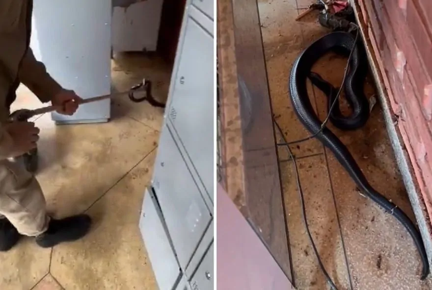 Uma cobra preta foi encontrada por uma funcionária em uma escola de Cidade