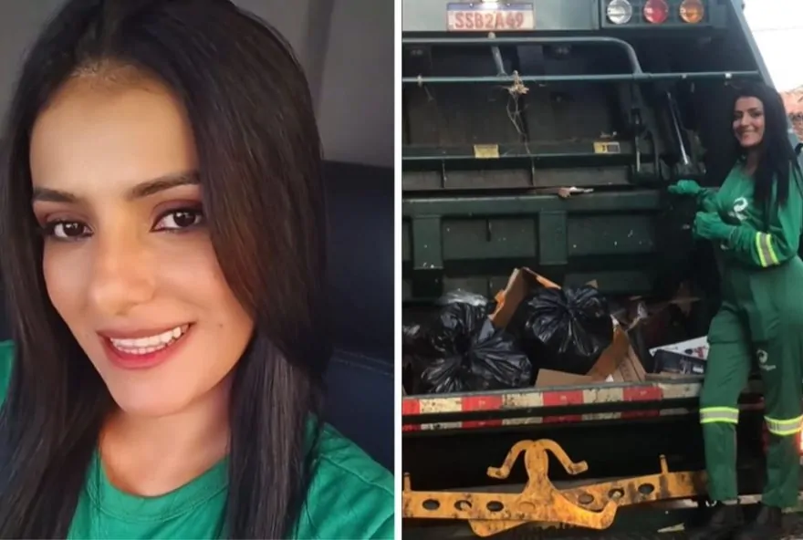 Coletora de lixo chama atenção da web pela beleza ao gravar vídeos durante o trabalho em Goiânia