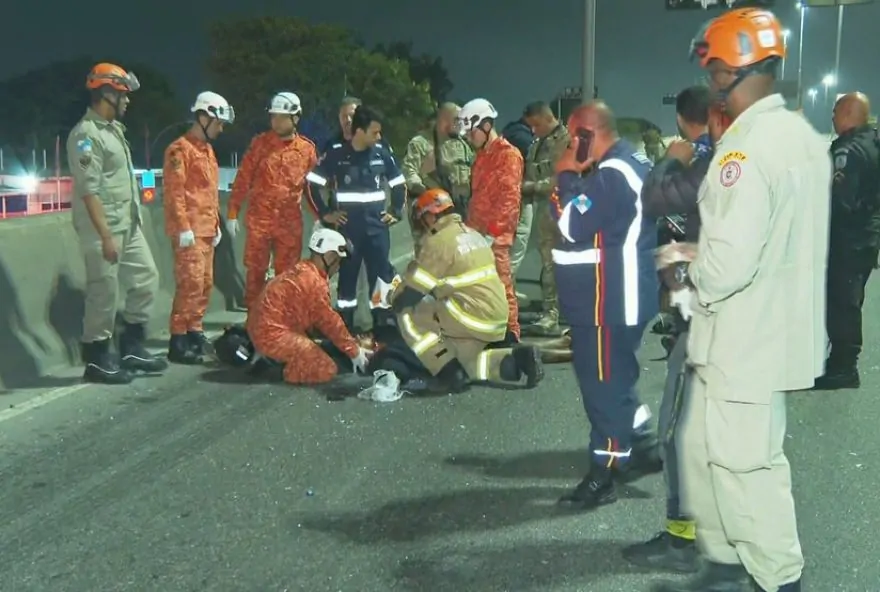 Dois criminosos em uma moto colidiram com uma ambulância na Avenida Brasil, na altura de Vigário Geral, resultando em ferimentos e suas prisões. O acidente ocorreu no mesmo local onde três agentes da Polícia Rodoviária Federal perderam a vida em um acidente envolvendo um veículo de passeio. Um dos suspeitos estava armado, fato que levou à prisão imediata após o ocorrido.