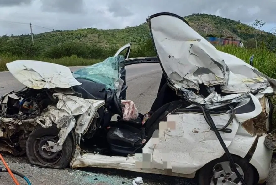 com o impacto, o veículo ficou destruído. O nome do ocupante que faleceu e do