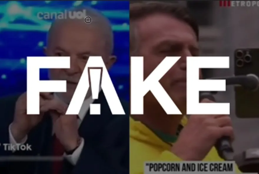 Circula nas redes sociais um vídeo que compara uma suposta fala em inglês de Luiz Inácio Lula da Silva (PT) com o discurso no qual Jair Bolsonaro (PL) cita “popcorn and ice cream sellers” (vendedores de pipoca e sorvete), durante o ato pela anistia dos envolvidos no 8 de Janeiro, em São Paulo, no domingo (6). É #FAKE. O vídeo adulterou a declaração original do petista, feita durante um debate em 2022. Uma ferramenta que detecta o uso de inteligência artificial em vídeos e fotos indicou que há 93,2% de chances de o material ter sido produzido artificialmente.