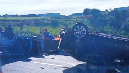 Segundo o Corpo de Bombeiros, os dois ocupantes do caminhão não tiveram ferimentos. Ainda não se sabe o que provocou o acidente.