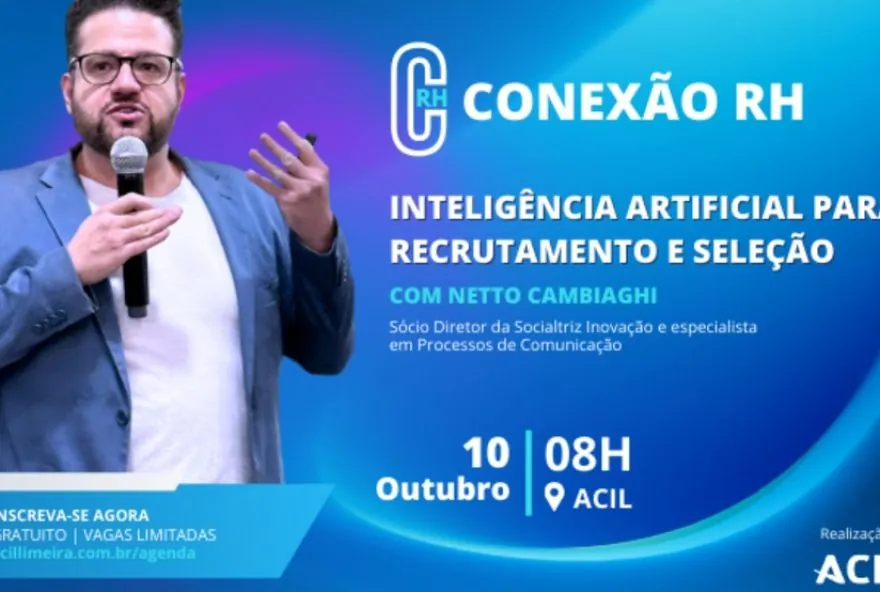 Se você deseja participar do Conexão RH e aprender mais sobre como a Inteligência Artificial pode revolucionar o recrutamento e seleção de talentos, não perca a oportunidade de se inscrever. O evento acontece no dia 10 de outubro, às 8h, na ACIL, localizada na Rua Santa Cruz, 647, Centro. As inscrições são gratuitas e podem ser feitas através do site da ACIL na seção de agenda.
