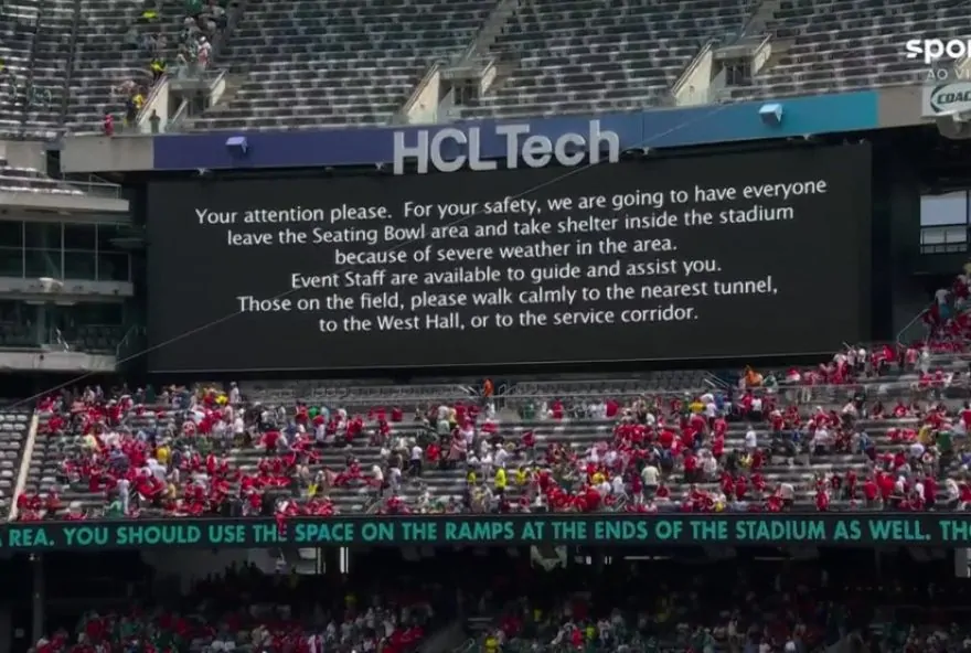 Os profissionais da tribuna de imprensa também foram alertados através de um aviso em seus celulares, evidenciando a seriedade da situação climática. Esta é a terceira partida da Copa do Mundo de Clubes nos Estados Unidos a ser interrompida devido a alertas climáticos, destacando a importância da segurança de todos os envolvidos no evento esportivo.