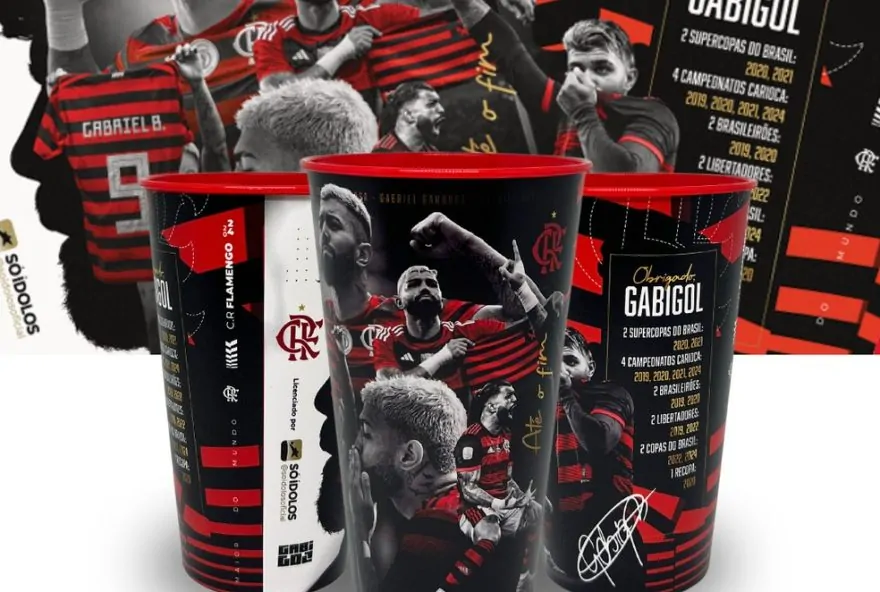Produzido pela empresa “Só Ídolos”, a peça com a imagem de Gabigol será vendida por R$ 25 no Maracanã. Esta é uma oportunidade única para os fãs do jogador garantirem uma lembrança exclusiva da despedida do ídolo do Flamengo. Com imagens marcantes da passagem de Gabigol pelo time, o copo traz momentos icônicos, como as comemorações dos gols contra o River Plate na final da Libertadores de 2019 e a vibração após converter um pênalti na decisão da Copa do Brasil de 2022 contra o Corinthians.