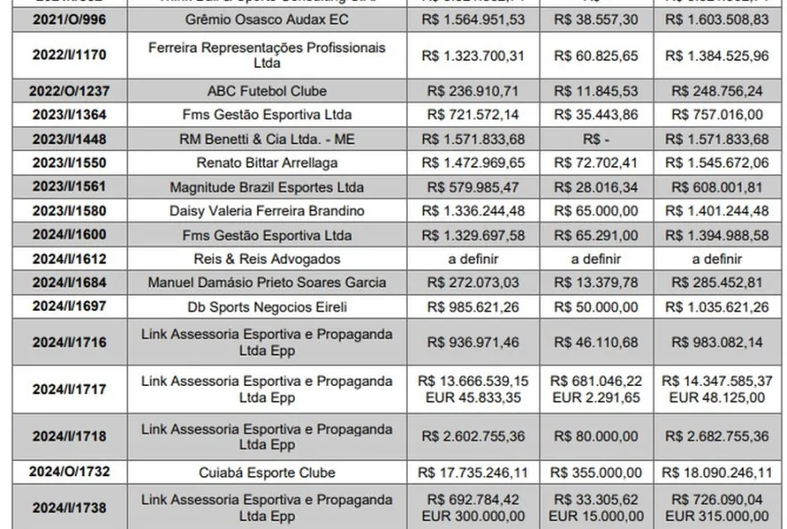 Inicialmente, a proposta era de pagar os débitos em oito anos, mas após descontentamento dos credores, a CNRD definiu que os pagamentos serão realizados em parcelas trimestrais ao longo de seis anos. O Cuiabá, com R$ 18 milhões a receber, é o principal beneficiado com esse plano.