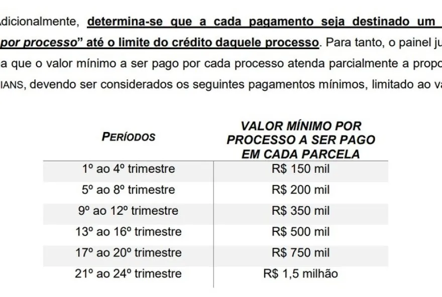 O plano coletivo do Corinthians, acordado no tribunal, prevê o pagamento total em 24 parcelas trimestrais ao longo de seis anos. A dívida de R$ 76 milhões com os credores deverá ser quitada rigorosamente conforme o cronograma estabelecido, sob pena de sofrer sanções, como o transfer ban.