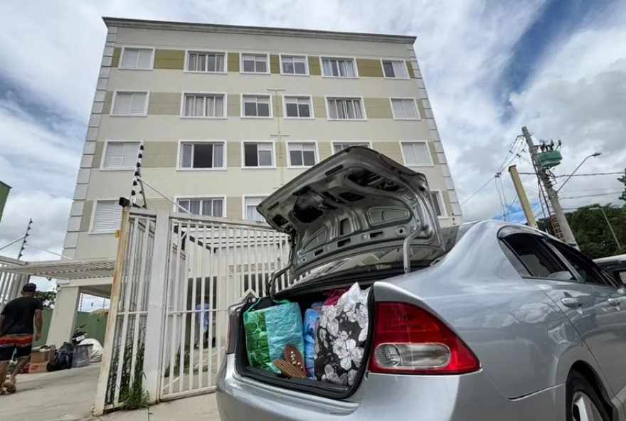 Fotos feitas pelo repórter Guilherme Machado, da Rede Vanguarda, mostram os moradores levando os pertences de forma improvisada, amarrados em sacos de lixo, sacolas de mercado ou em trouxas de lençóis, para transportar roupas, calçados e alguns eletrodomésticos.