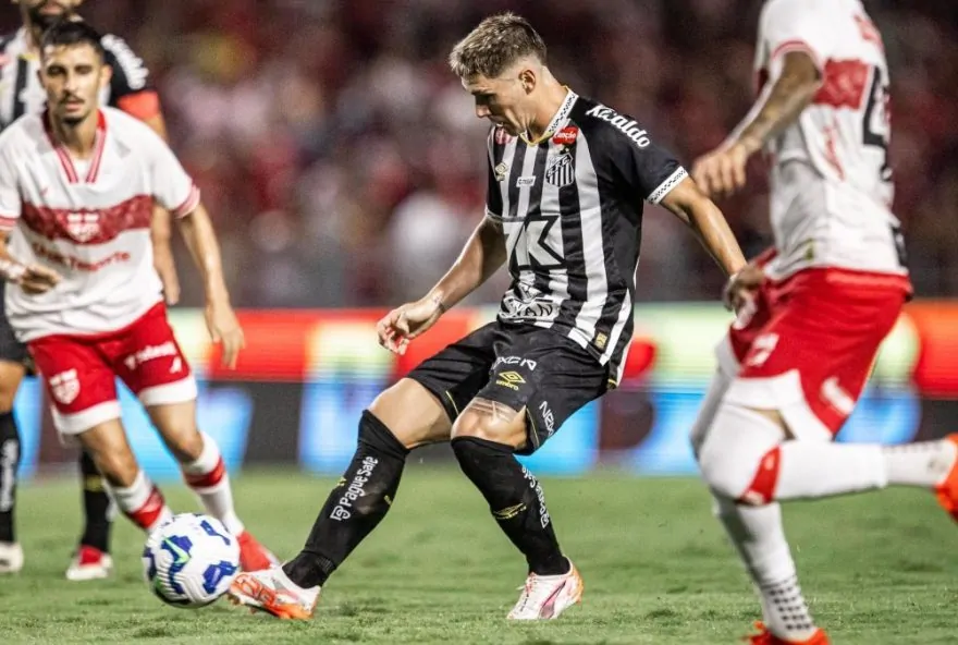 O primeiro tempo foi bastante equilibrado. O Santos começou melhor, com mais posse de bola e presença ofensiva, chegando a ocupar completamente o campo de ataque. No entanto, a partir da metade da etapa inicial, o CRB respondeu e passou a levar perigo.