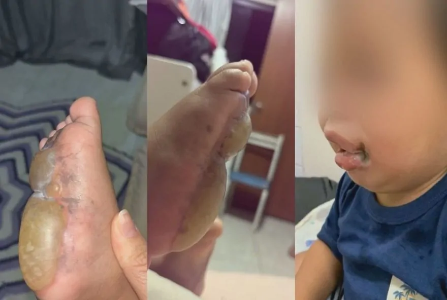 Na terça-feira (11), a mãe da criança que teve os pés queimados, Monara Lourenço, recebeu uma ligação de tarde para encontrar o filho no posto de saúde perto da escola. Ao chegar no local, a mãe viu as queimaduras nos pés do bebê.