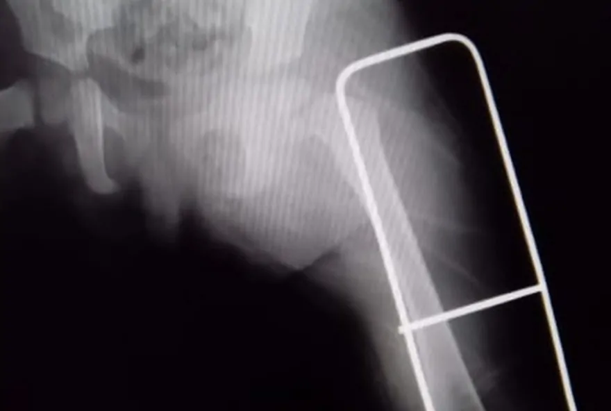 Raio-x mostra parte do corpo da criança atingida pelo disparo de arma de