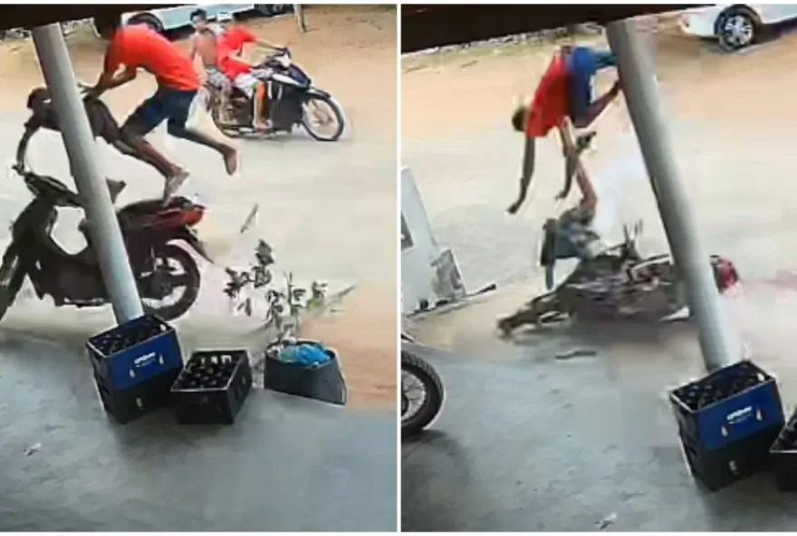 Vídeo: criança e adolescente ‘voam’ após batida de moto no interior do Ceará