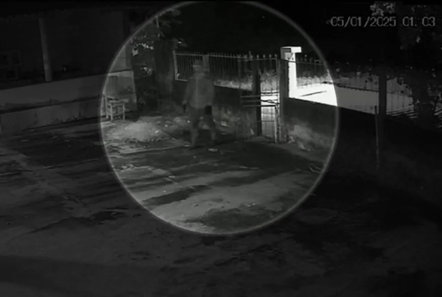 Câmeras de segurança flagraram o suposto envolvido no crime se aproximando do