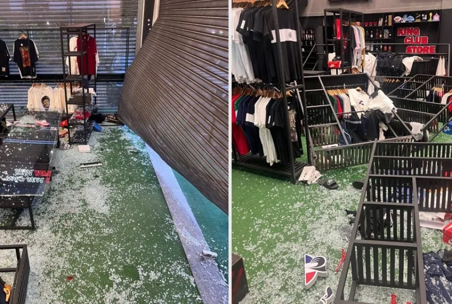 O proprietário calcula o prejuízo, levando em conta os danos à estrutura. “Foi grande, tá? Tá beirando os R$ 20 mil. A porta que eu tive que arrumar, mercadoria, foi muita coisa, a gente só trabalha com mercadorias 100% originais, né? Foi bastante”, relata.