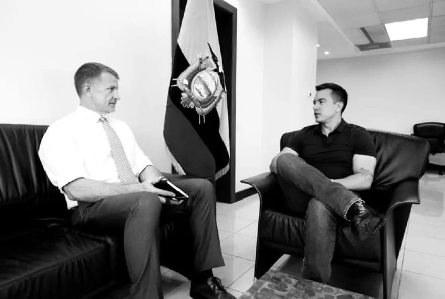 Noboa revelou que, durante uma reunião com Erik Prince, fundador da Blackwater, foi estabelecida uma aliança estratégica para fortalecer as capacidades do Equador na luta contra o narcoterrorismo e na proteção das águas contra a pesca ilegal. O presidente enfatizou que não há trégua e que estão determinados a seguir em frente nesse desafio. O objetivo é melhorar a segurança no Equador e combater a crescente violência ocasionada pelo tráfico de drogas.