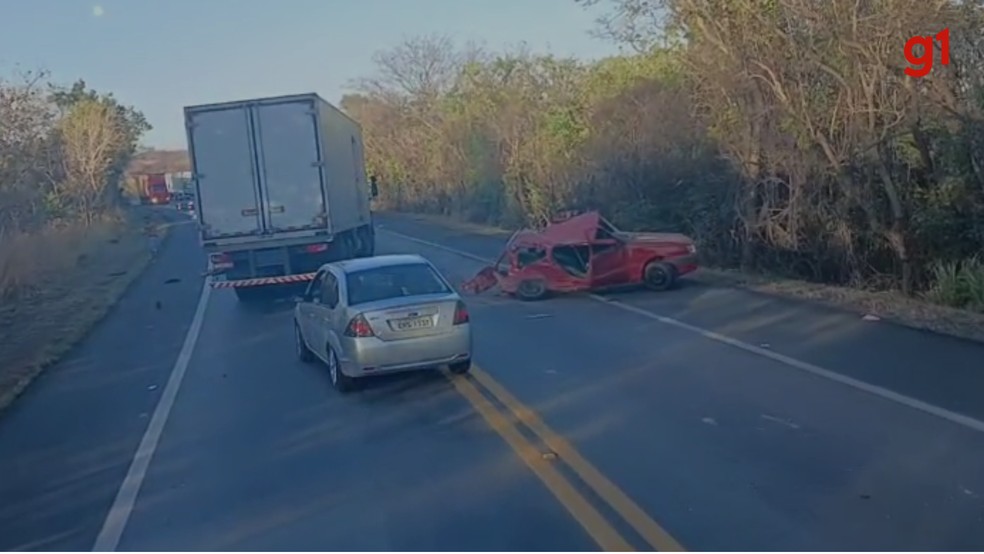 Enfermeira morre em acidente entre carro e carreta na BR-135 em Engenheiro Navarro. Motorista em estado grave. Caminhoneiro ileso. Acidente na BR-135 em Engenheiro Navarro resulta na morte de enfermeira. Motorista do carro ferido gravemente. Caminhoneiro ileso.