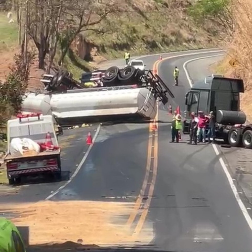 Caminhão carregado com sebo tomba em rodovia de Amparo, interditando a pista. Motorista teve ferimentos leves. Ypê e CETESB acionadas para avaliação ambiental.