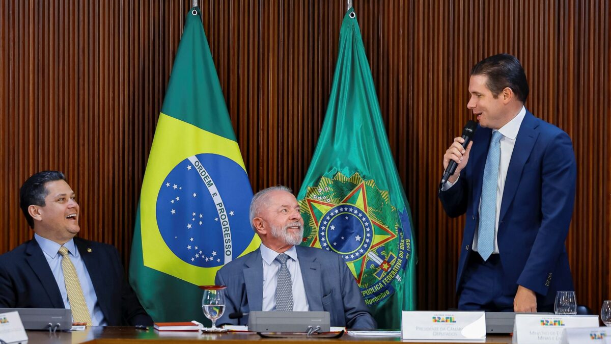 Presidente Lula elogia trabalho do Congresso em cerimônia no Palácio do Planalto ao lado do presidente da Câmara dos Deputados.
