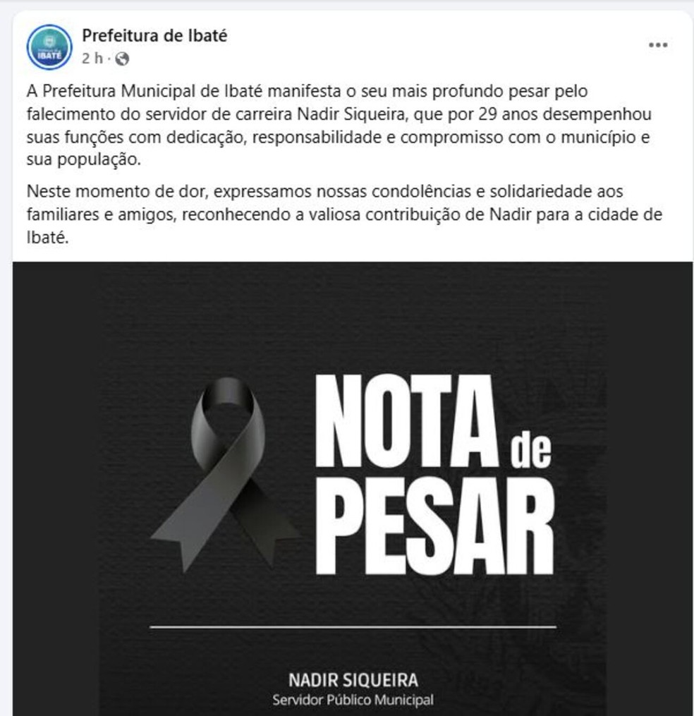 Servidor público de 55 anos de Ibaté morre em grave acidente com caminhão. Prefeitura lamenta a perda. Veja mais detalhes.