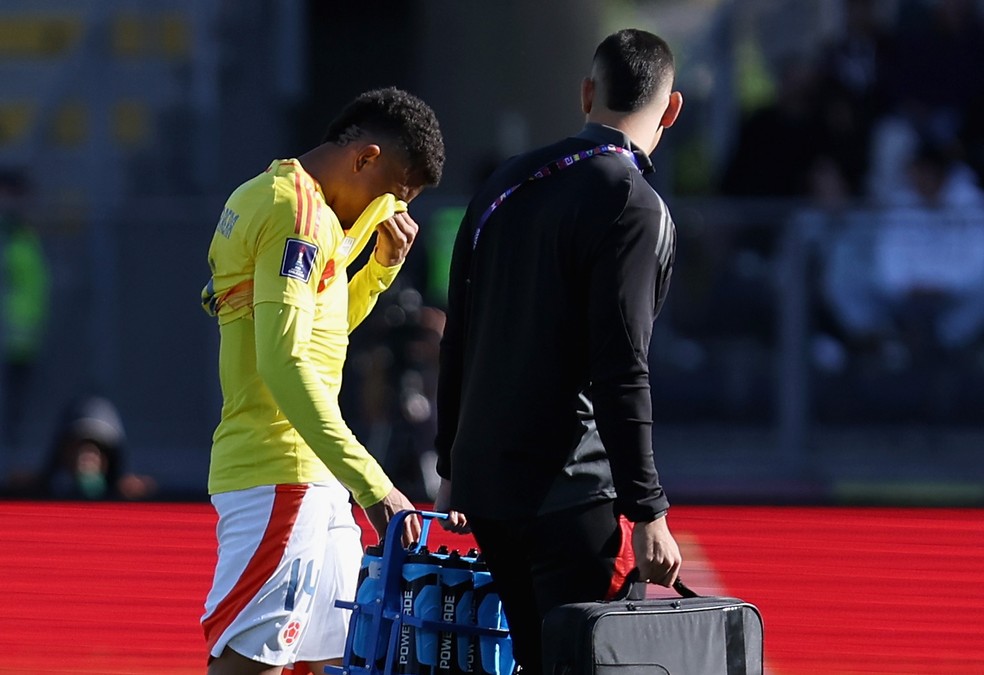 Jordan Barrera, do Botafogo, deixa Espanha x Colômbia chorando com dores na coxa. Atacante aguarda exames para determinar gravidade da lesão na Copa do Mundo Sub-20.