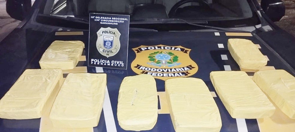 Casal detido em Garanhuns com oito quilos de crack em carro de luxo após perseguição da PRF. Apreensão realizada em operação conjunta com Polícia Civil.