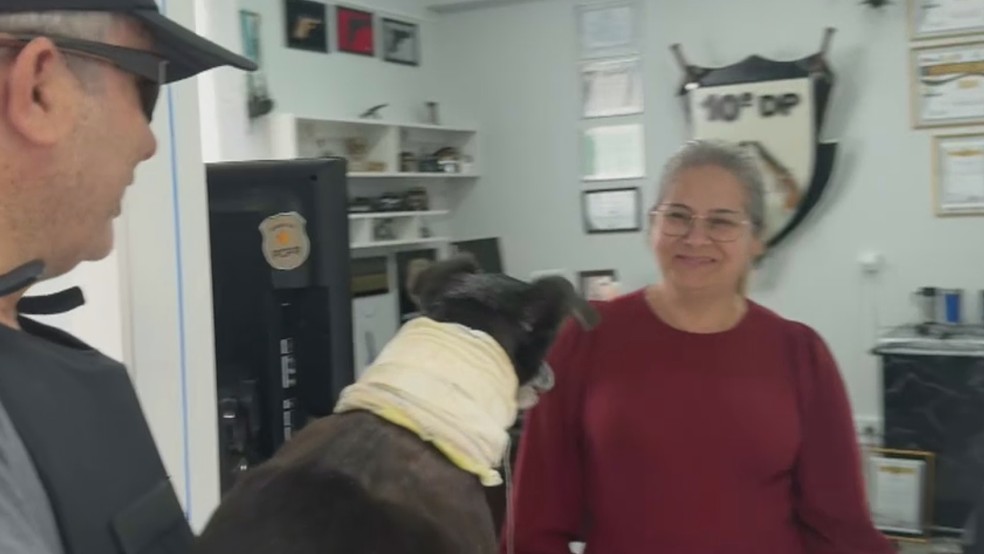 Cachorro idoso é resgatado por policiais após ser encontrado ferido no Paraná. Após recuperação, reencontra tutora em emocionante reencontro.