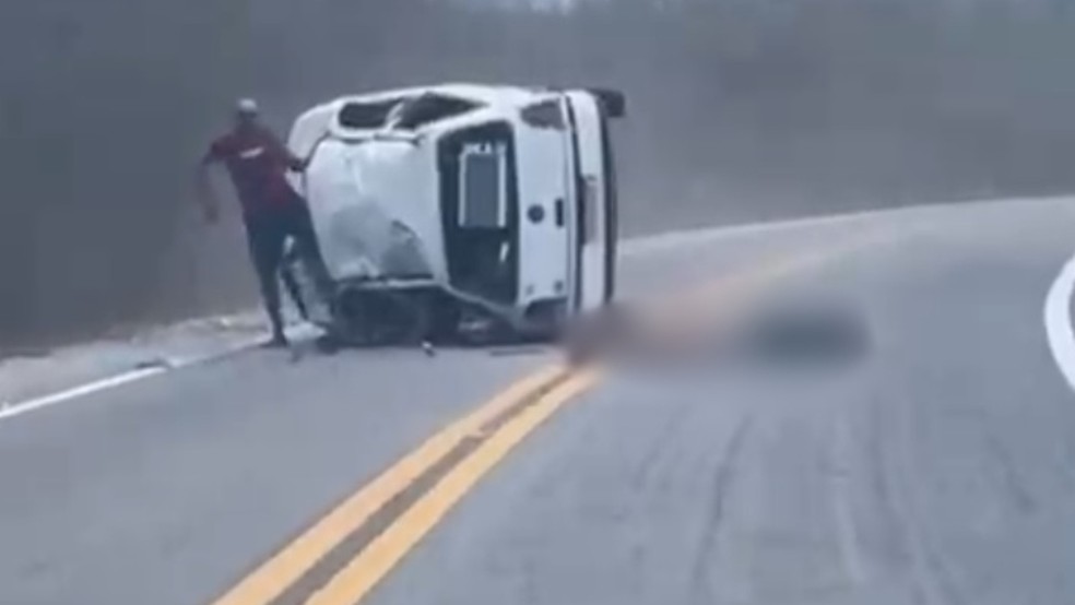 Carro capota e arremessa mulher na CE-464 em Aracoiaba, Ceará