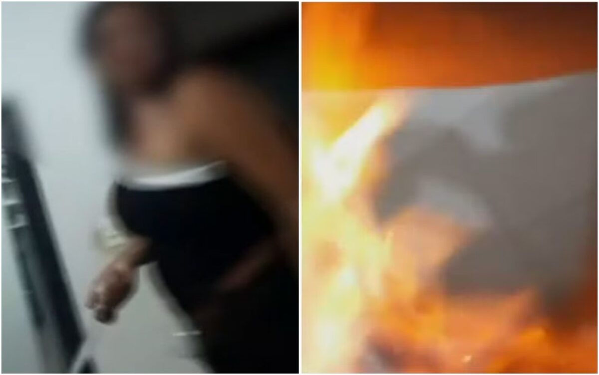 Mulher filmada ao atear fogo ao marido também o ameaçou com faca