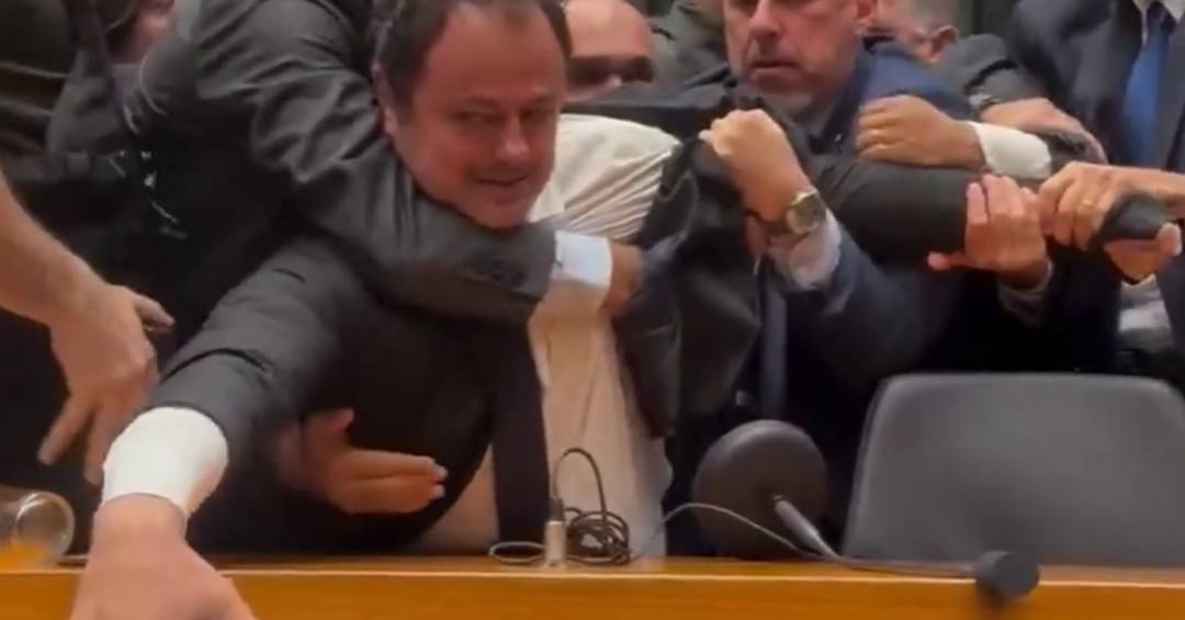 Momentos de tensão na Câmara dos Deputados do Brasil com empurrões e conflitos durante apresentação de projeto polêmico para reduzir pena de Bolsonaro.