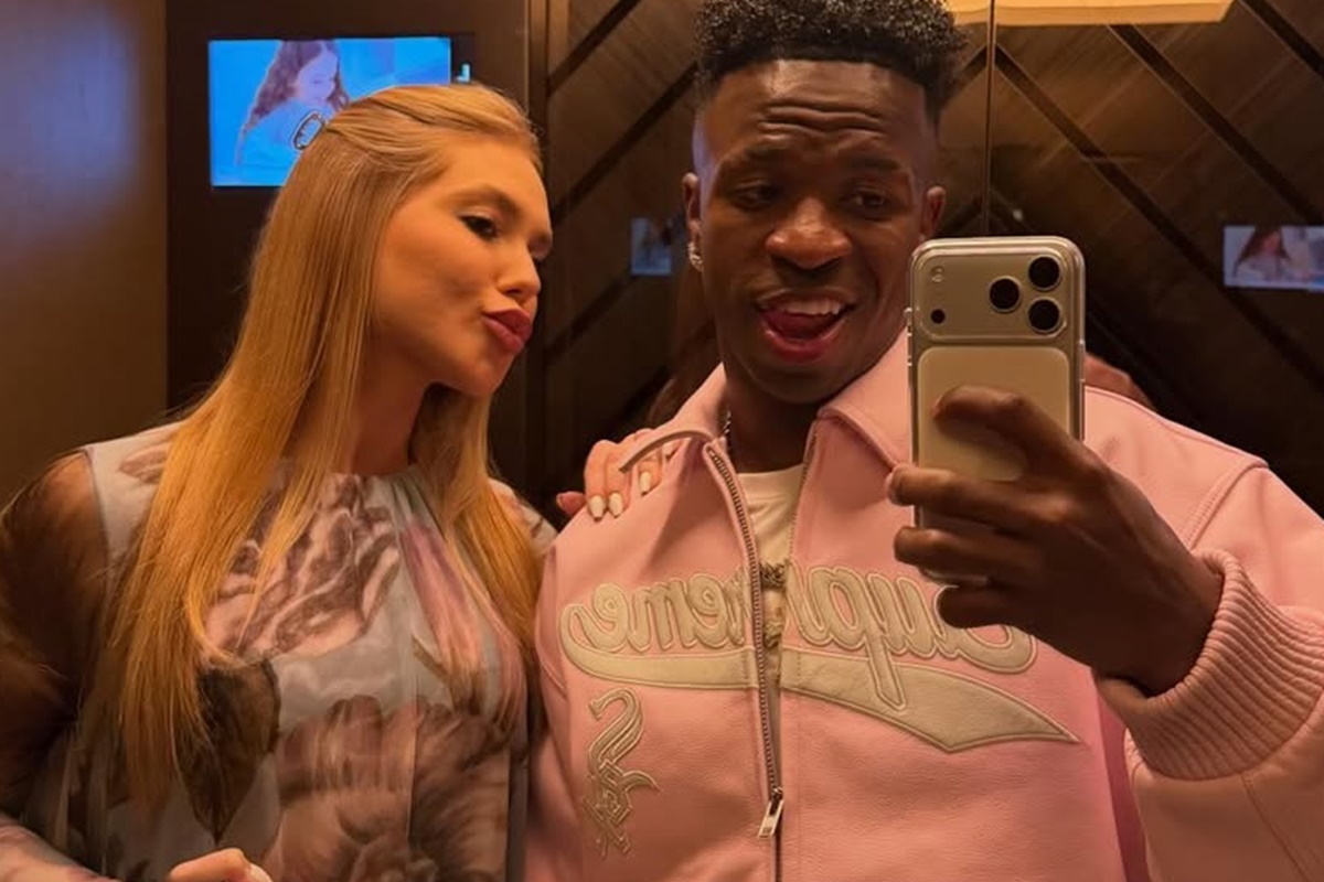 Vini Jr. desembarcou no Brasil para passar o Natal com Virginia Fonseca. Os dois posaram abraçados em Goiânia antes de curtirem a noite juntos.