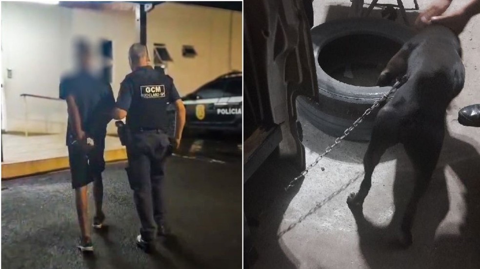 Homem é preso por maus-tratos a pitbull em Rio Claro (SP): cão agredido e mantido em condições precárias.