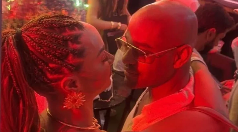 Ex-BBBs Cezar Black e Aline Patriarca são vistos se beijando na virada do ano em Goiânia. Rumores de romance aumentam com registro de Lucas Guimarães.