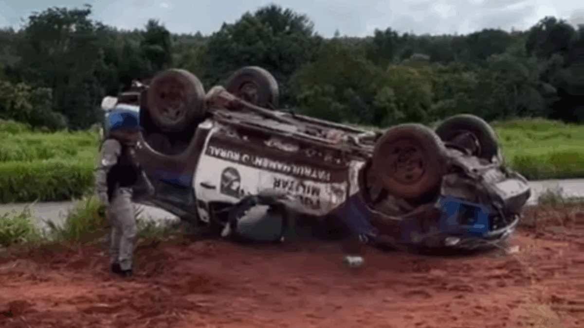 Viatura do Batalhão Rural da Polícia Militar de Goiás capotou na BR-060 entre Rio Verde e Jataí, com dois policiais a bordo, um capitão e um cabo.