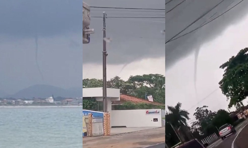 Uma tromba d’água impressiona moradores e banhistas em São Francisco do Sul, Santa Catarina. Alerta para tempestades e ventos fortes devido a um ciclone extratropical na região.