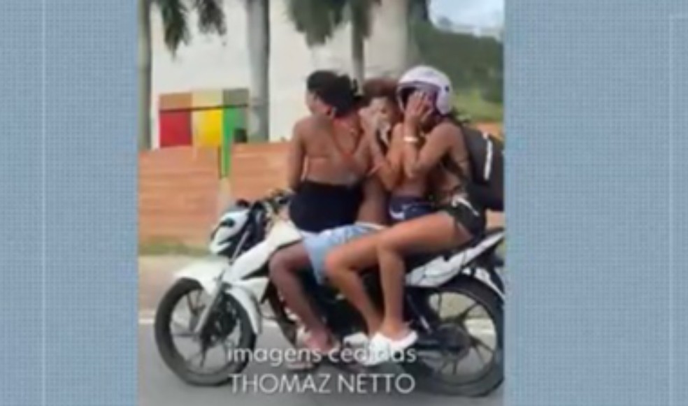 Vídeos mostram flagrantes de perigo no trânsito com moto com quatro pessoas e carro transportando carga gigante na Linha Vermelha. Riscos graves em vias movimentadas do Rio.