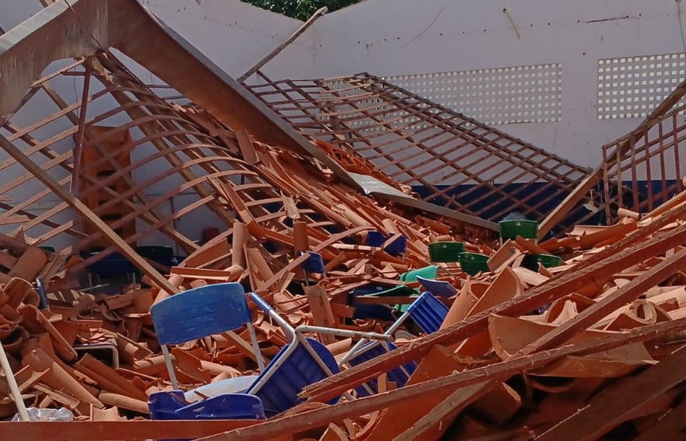 Desabamento do teto na Escola Municipal Tomé de Sousa em Imperatriz: aulas mantidas.