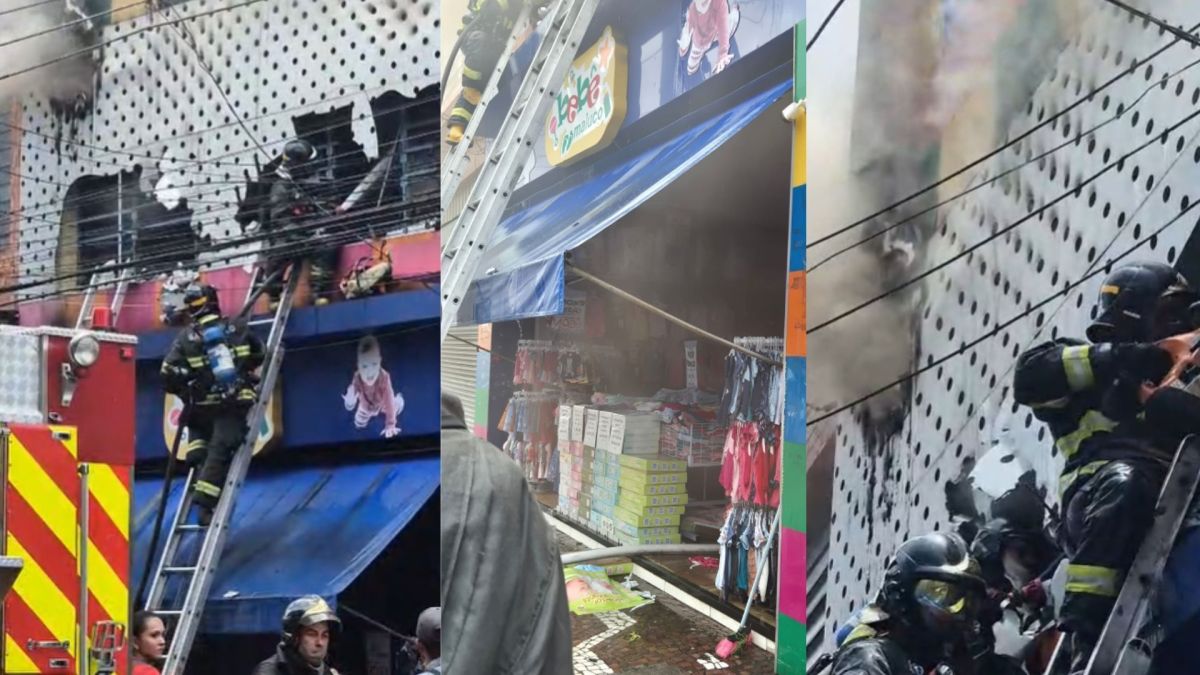 Incêndio atinge loja de artigos infantis no Brás, em São Paulo. Bombeiros combatem as chamas. Causas desconhecidas. População se mobiliza.