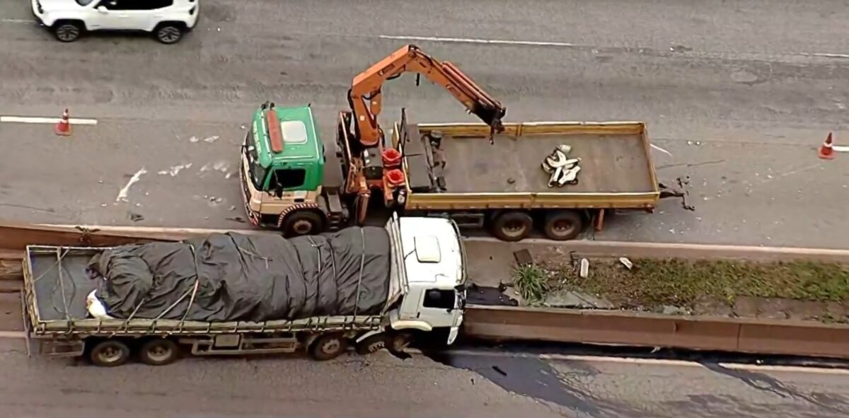 Caminhão colide contra mureta na BR-381 em MG causando retenção de 2 km no sentido SP