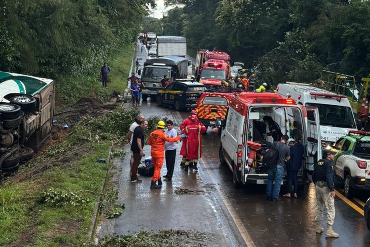 Acidente: Ônibus tomba com 28 passageiros na BR-153