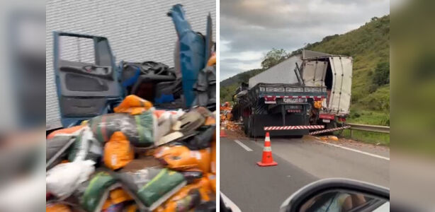 Colisão entre caminhão e carreta na BR-101 em Guarapari deixa um ferido e provoca lentidão no trânsito. Motorista foi socorrido com lesões médias.