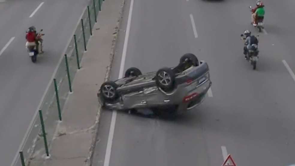 Carro capota em acidente na Avenida Washington Soares: trânsito afetado e motoristas ilesos