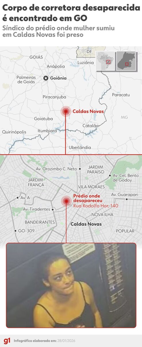 Corretora de imóveis é encontrada morta em prédio de Caldas Novas. Síndico confessou crime e corpo foi localizado. Saiba mais!