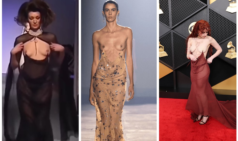 Chappell Roan se destaca com look provocante e elegante no Grammy Awards 2026, usando prótese nos seios. Polêmicas sobre código de vestimenta no evento crescem.