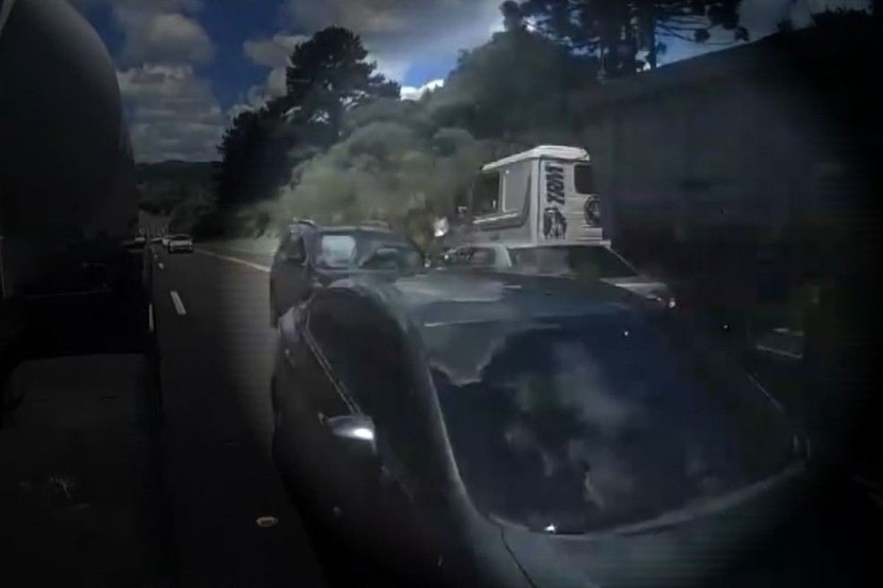 Câmera de caminhão flagra acidente na BR-277, PR: motorista não consegue ultrapassar e provoca colisão