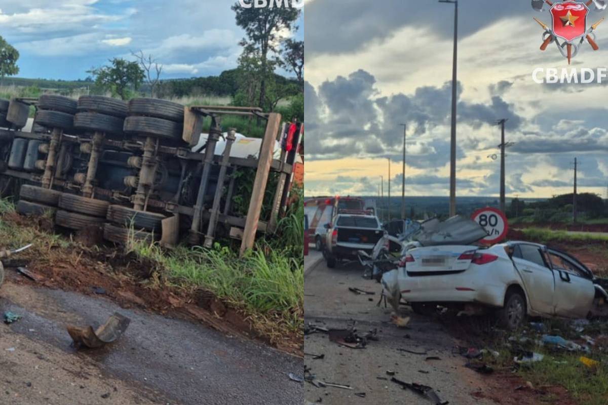 Acidente fatal entre caminhão e carro com líquido inflamável em Brazlândia